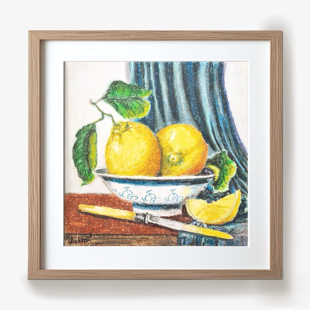 This art print is a replica of an original oil pastel artwork ‘Lemons’ by Australian based artist, Jallo.